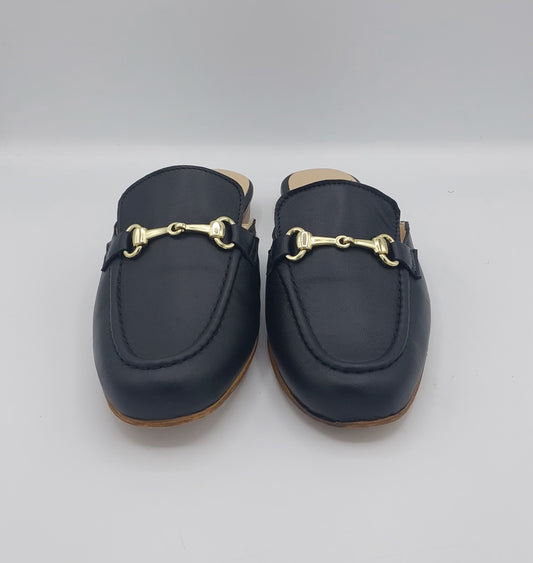 EsauritoSabot in pelle nera con staffa oro