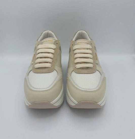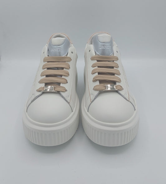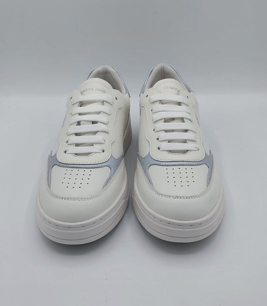 Janet e Janet sneakers donna pelle bianca con inserti celesti