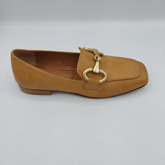 Anima moccasin in beige leather with matt gold buckle