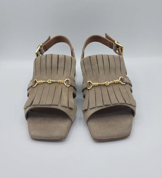 Carmens sandalo in camoscio tortora con morsetto oro