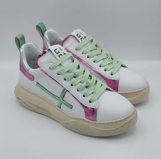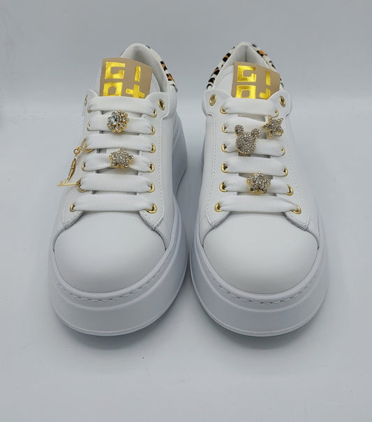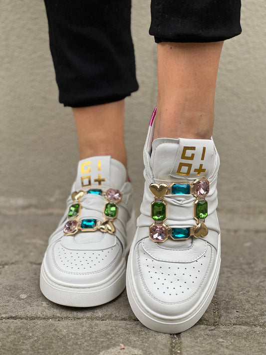 Sneakers GIO+ white leather with applications