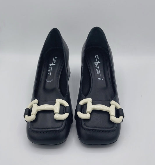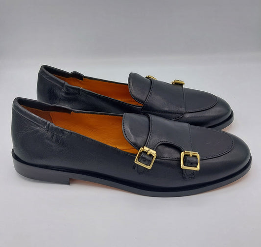 Silvia rossini mocassino in pelle nera doppia fibbia