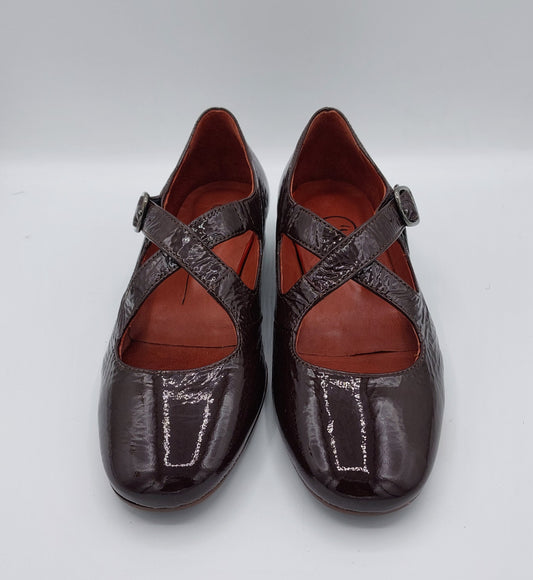Le Bohemien scarpa legata in pelle nera e marrone profilata di bianco