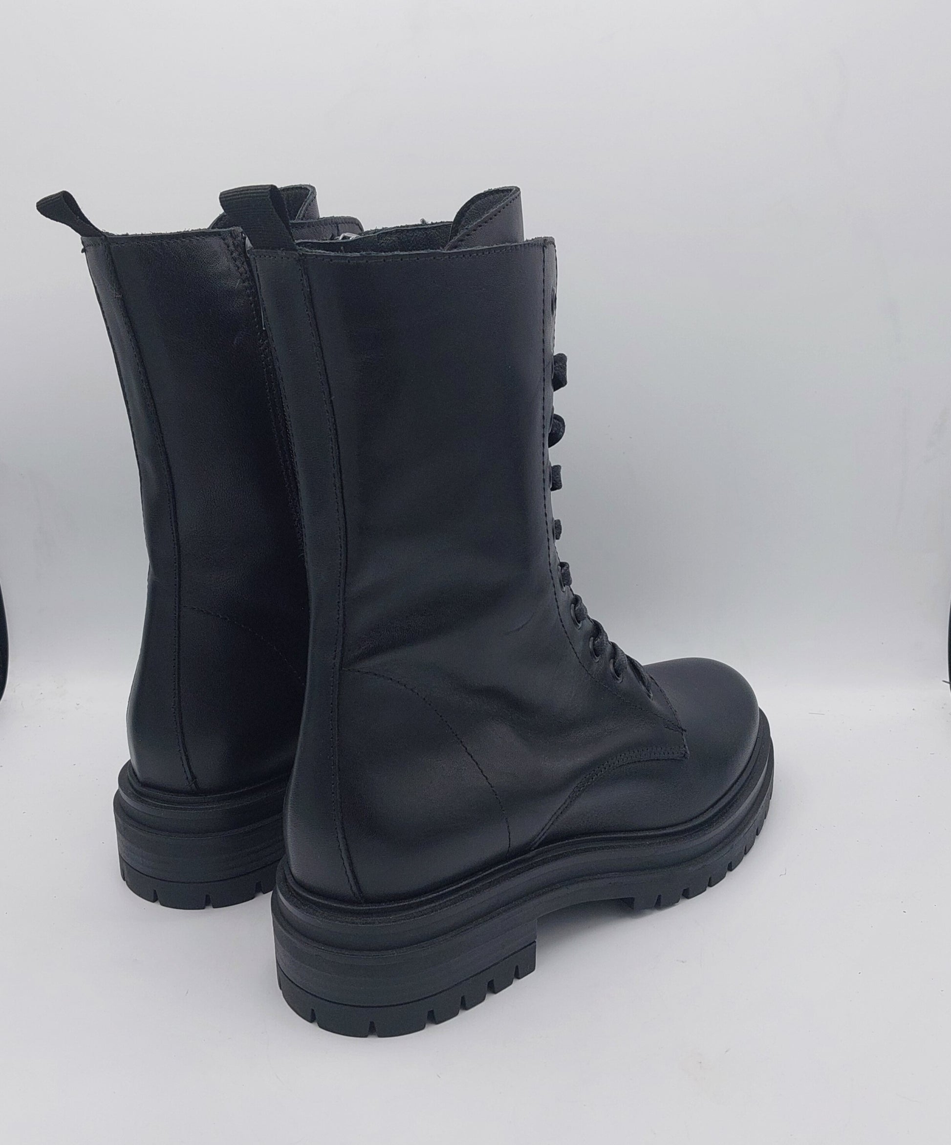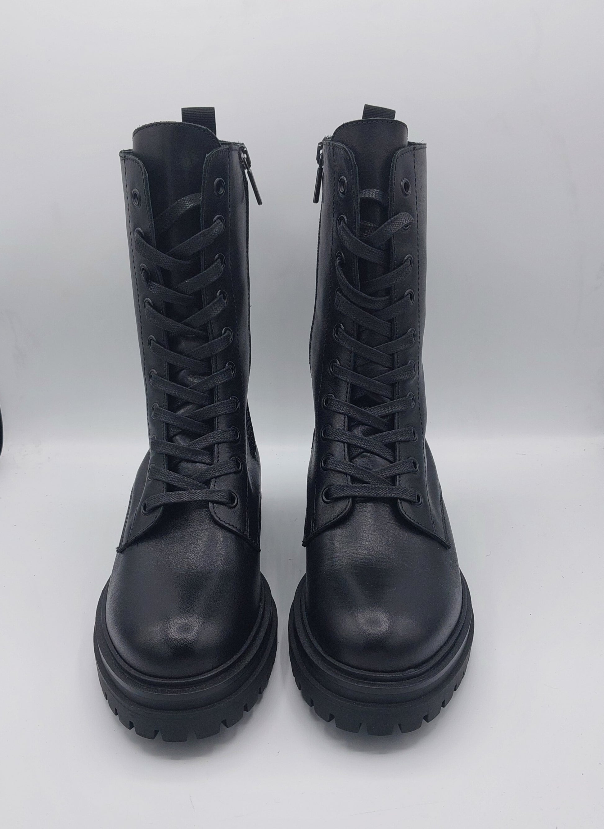 Anfibio donna in pelle nera con cerniera interna