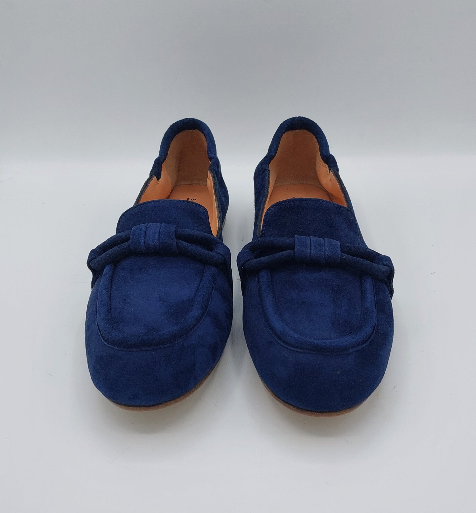 Mocassini in camoscio blu con fiocco in tinta