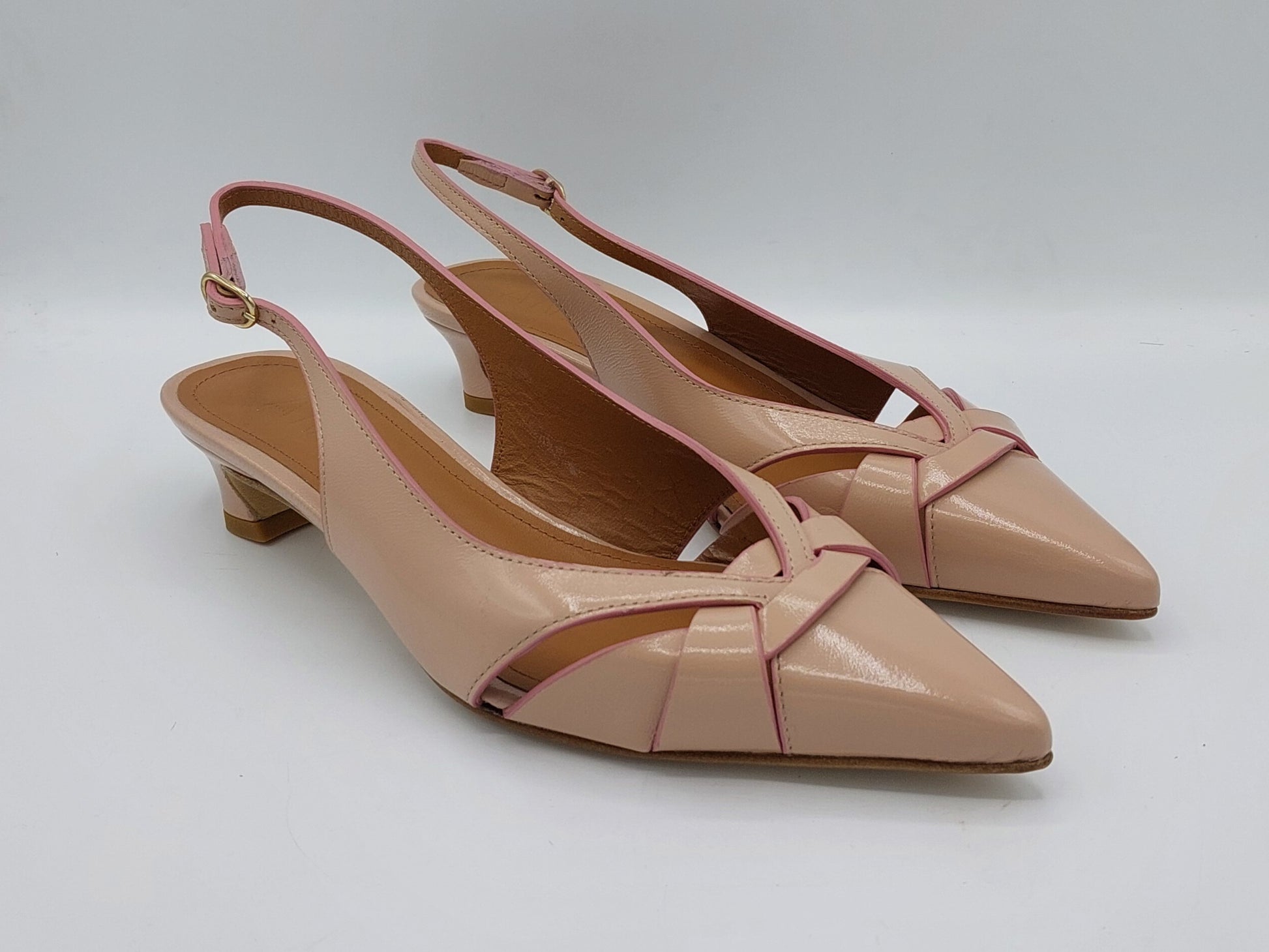 Chanel in pelle cipria bordata di rosa tacco racchetto