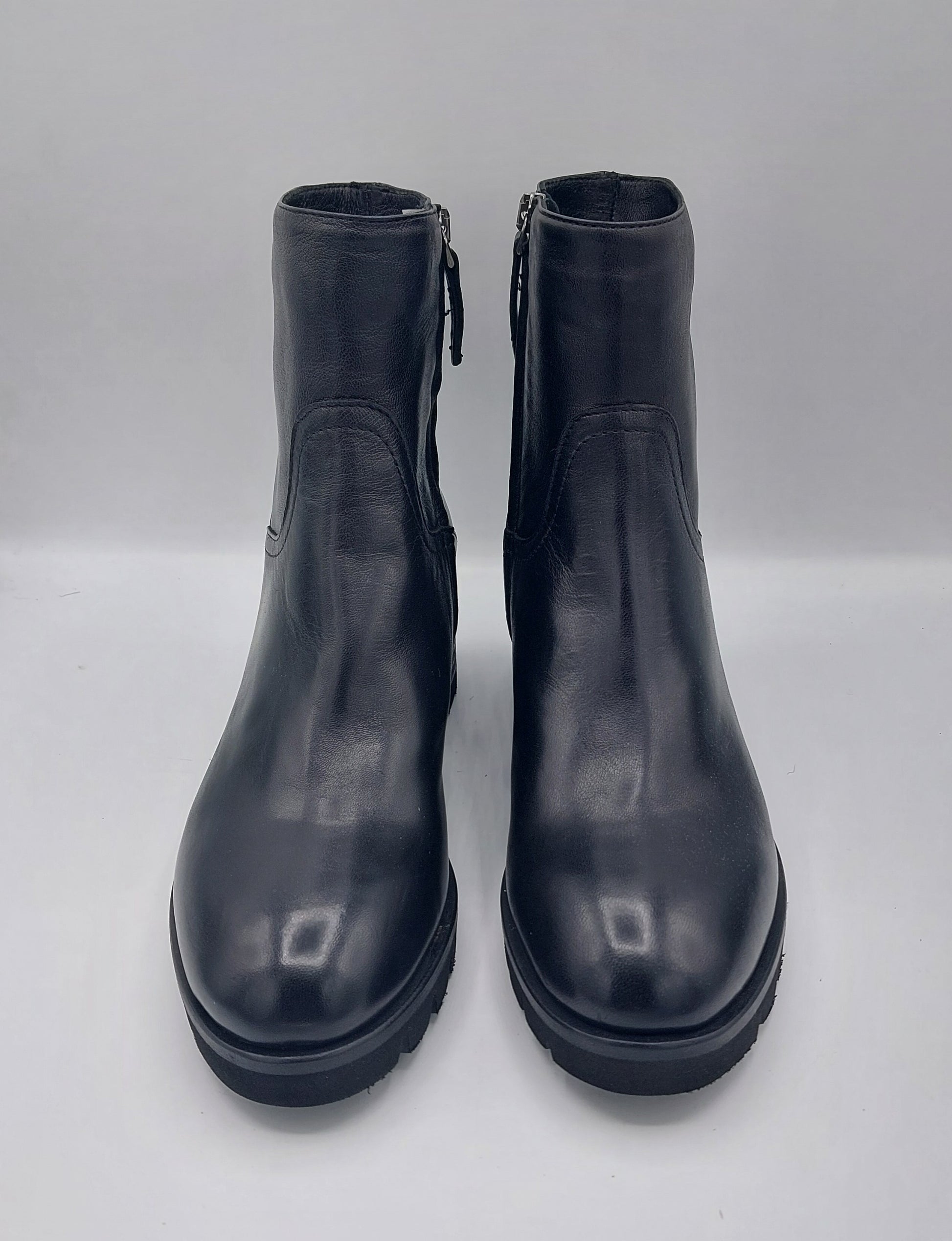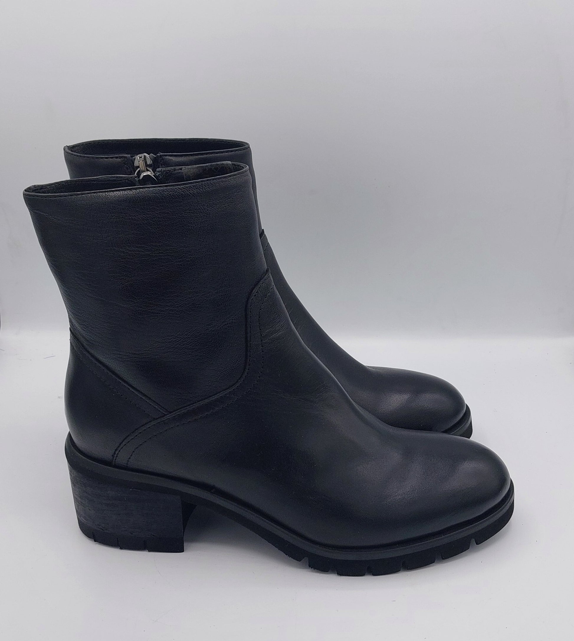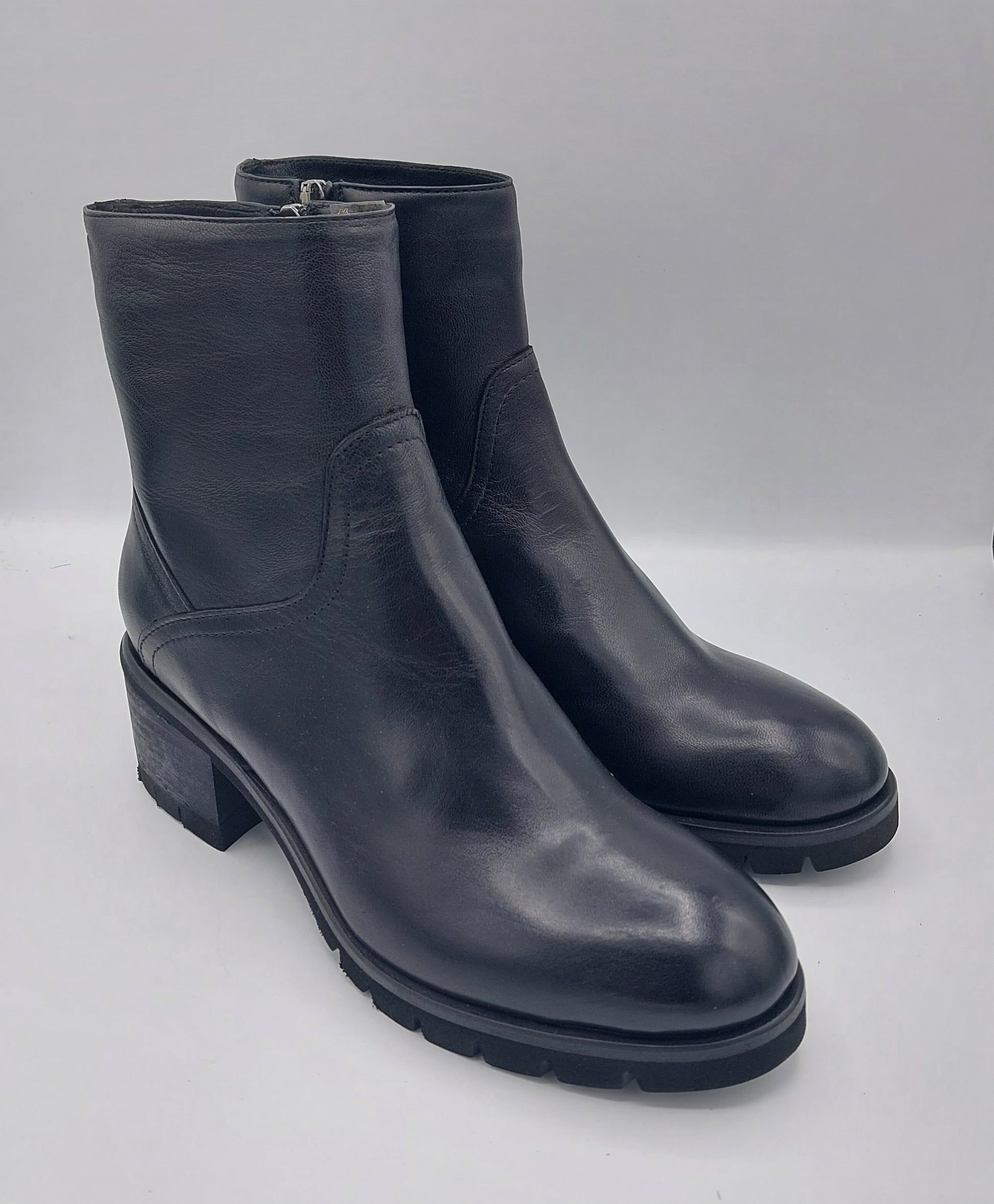 Stivaletto in pelle nera con tacco giornaliero e cerniera interna